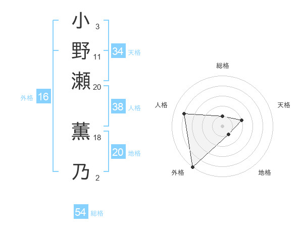 小野瀬 薫乃さんを姓名の画数から五運を鑑定