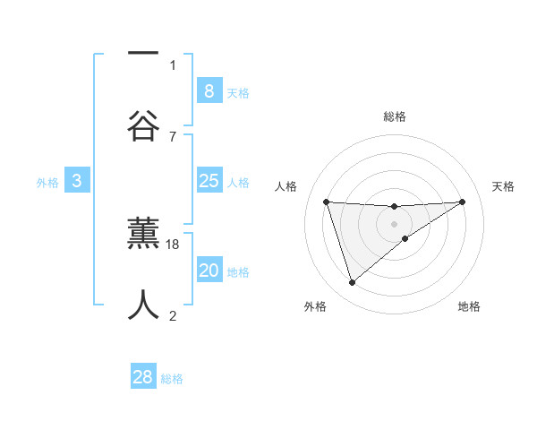 一谷 薫人さんの総格は28画の1点!
