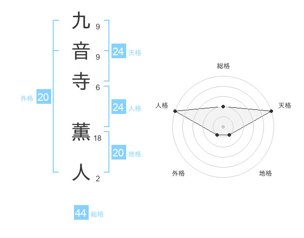 九音寺 薫人さんの総格は44画の2点!
