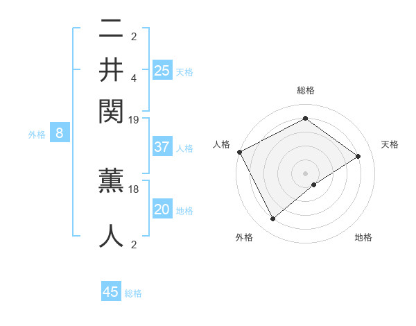 二井関 薫人さんを姓名の画数から五運を鑑定