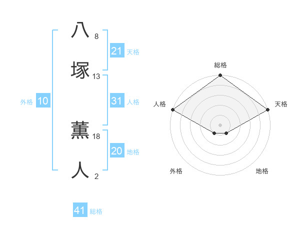 八塚 薫人さんを姓名の画数から五運を鑑定