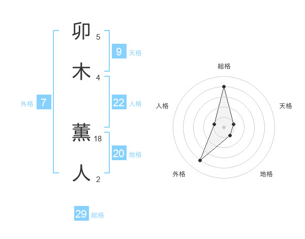 卯木 薫人さんの総格は29画の4点!