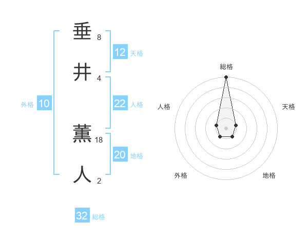 垂井 薫人さんの総格は32画の5点!