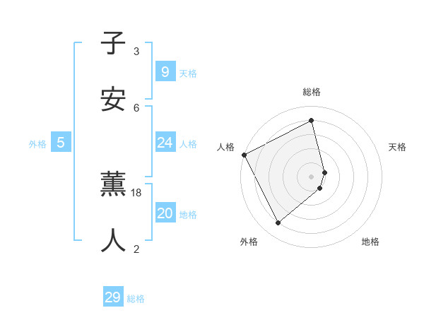 子安 薫人さんの総格は29画の4点!