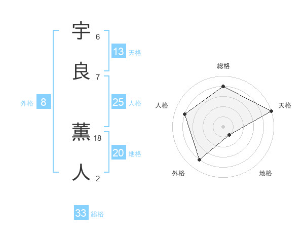 宇良 薫人さんを姓名の画数から五運を鑑定