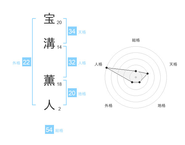 宝溝 薫人さんの総格は54画の1点!