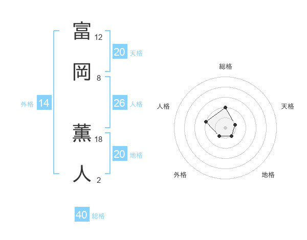 富岡 薫人さんの天格は20画の1点!