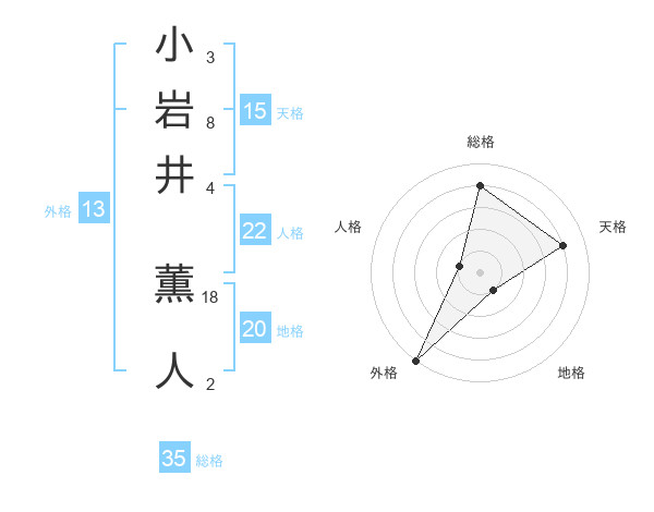 小岩井 薫人さんの総格は35画の4点!