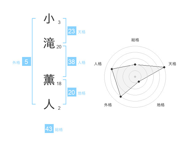 小滝 薫人さんを姓名の画数から五運を鑑定