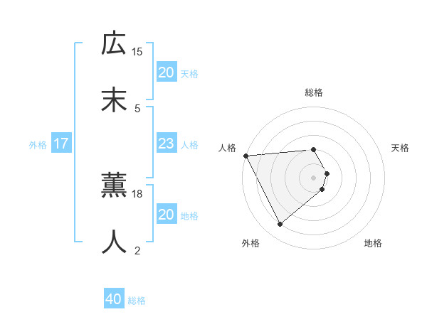 広末 薫人さんの天格は20画の1点!