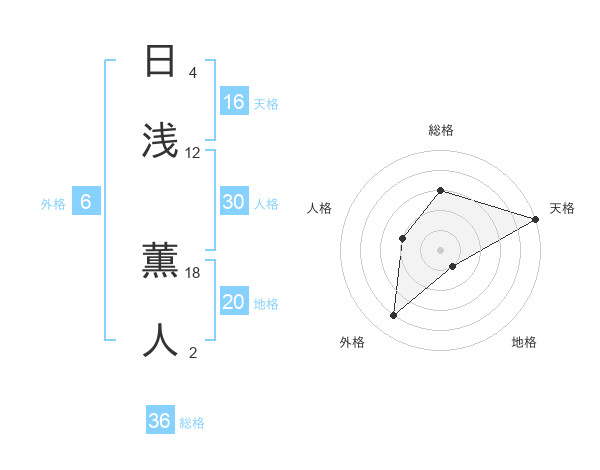 日浅 薫人さんの天格は16画の5点!