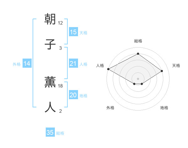 朝子 薫人さんを姓名の画数から五運を鑑定