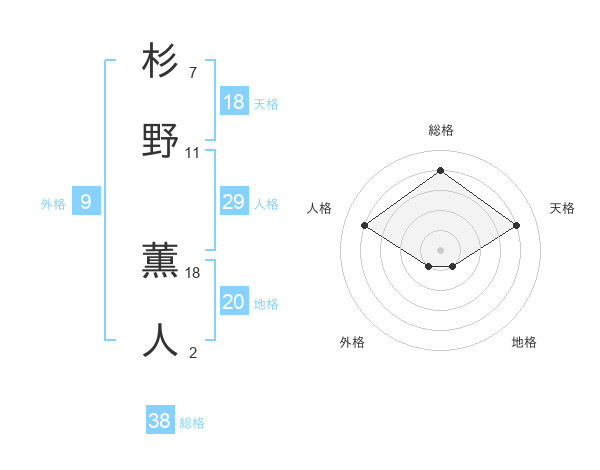 杉野 薫人さんを姓名の画数から五運を鑑定