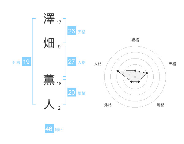 澤畑 薫人さんを姓名の画数から五運を鑑定