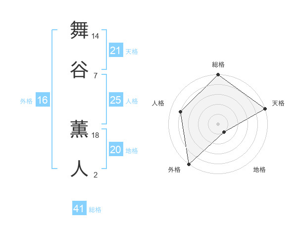 舞谷 薫人さんを姓名の画数から五運を鑑定