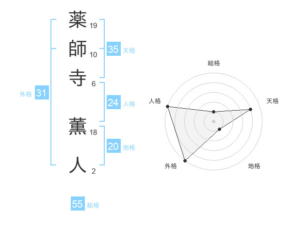 薬師寺 薫人さんを姓名の画数から五運を鑑定