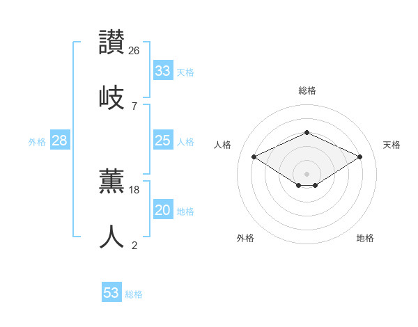 讃岐 薫人さんを姓名の画数から五運を鑑定