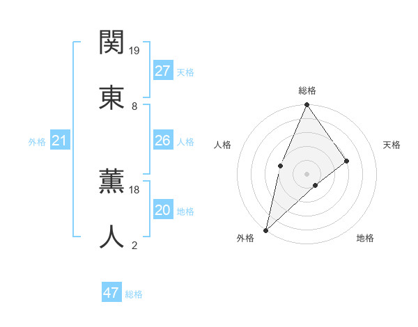 関東 薫人さんの総格は47画の5点!