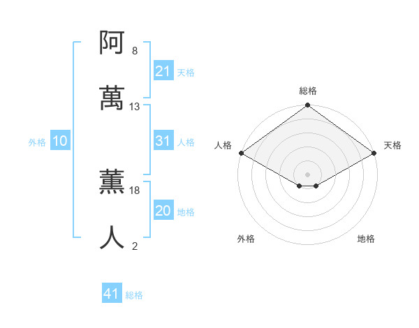 阿萬 薫人さんの天格は21画の5点!