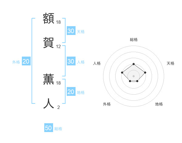 額賀 薫人さんを姓名の画数から五運を鑑定