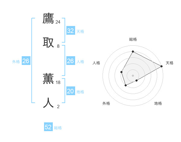 鷹取 薫人さんを姓名の画数から五運を鑑定