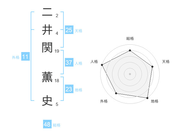 二井関 薫史さんの総格は48画の4点!