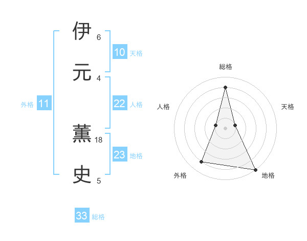 伊元 薫史さんの総格は33画の4点!