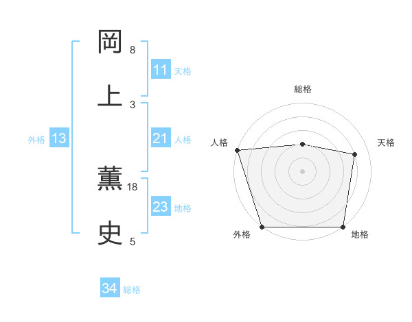 岡上 薫史さんの外格は13画の5点!