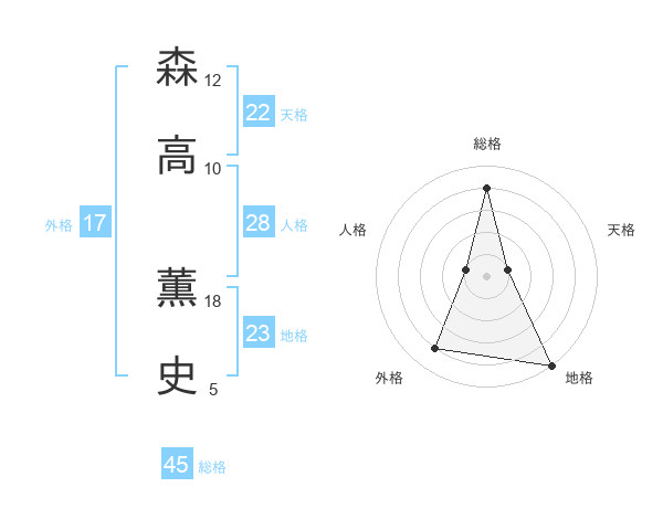 森高 薫史さんの総格は45画の4点!