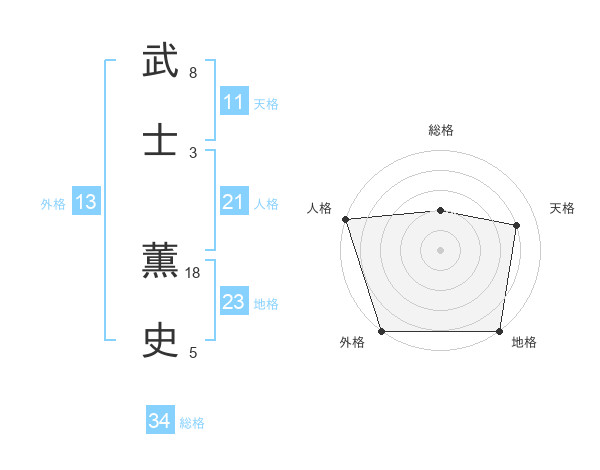 武士 薫史さんの人格は21画の5点!