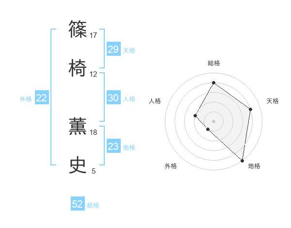 篠椅 薫史さんの総格は52画の4点!