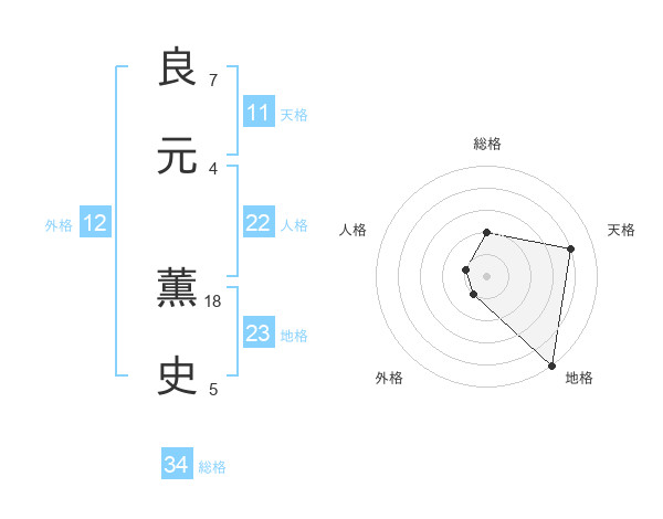 良元 薫史さんの天格は11画の4点!