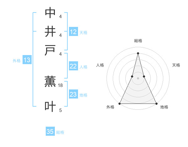 中井戸 薫叶さんを姓名の画数から五運を鑑定