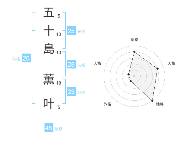 五十島 薫叶さんを姓名の画数から五運を鑑定