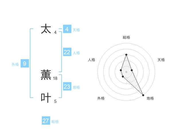 太 薫叶さんの地格は23画の5点!