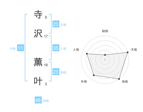 寺沢 薫叶さんの天格は23画の5点!