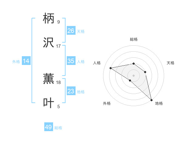 柄沢 薫叶さんを姓名の画数から五運を鑑定