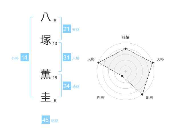 八塚 薫圭さんの総格は45画の4点!
