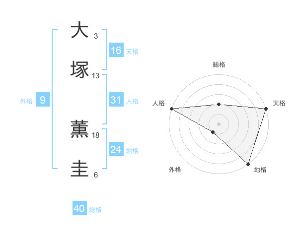 大塚 薫圭さんを姓名の画数から五運を鑑定