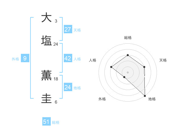 大塩 薫圭さんを姓名の画数から五運を鑑定