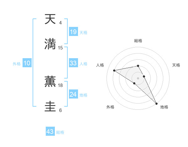 天満 薫圭さんの総格は43画の2点!