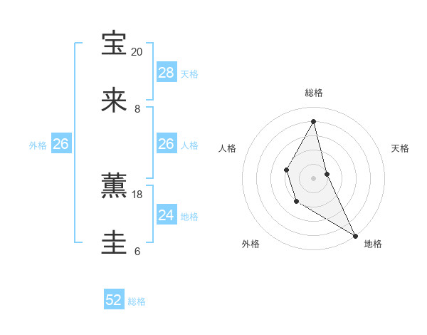 宝来 薫圭さんを姓名の画数から五運を鑑定