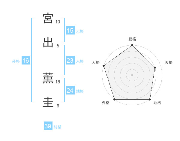 宮出 薫圭さんを姓名の画数から五運を鑑定