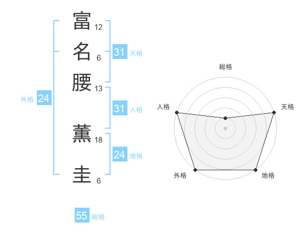 富名腰 薫圭さんの総格は55画の1点!