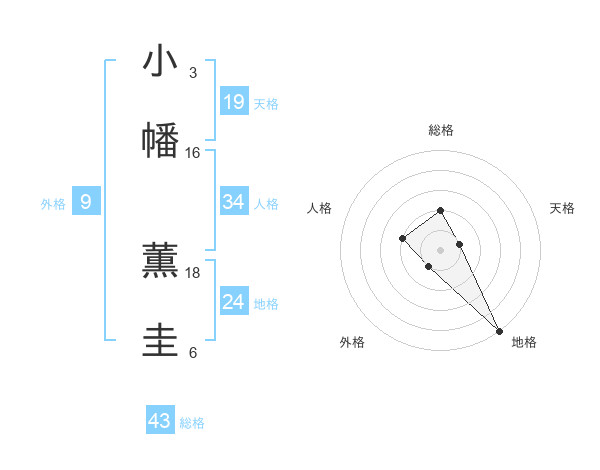 小幡 薫圭さんの総格は43画の2点!