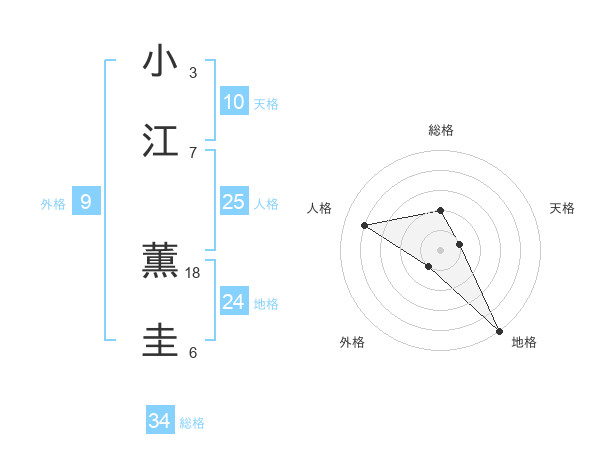 小江 薫圭さんの総格は34画の2点!