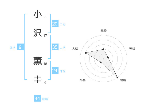 小沢 薫圭さんの総格は44画の2点!