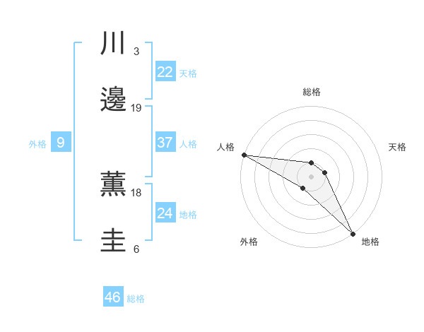 川邊 薫圭さんを姓名の画数から五運を鑑定