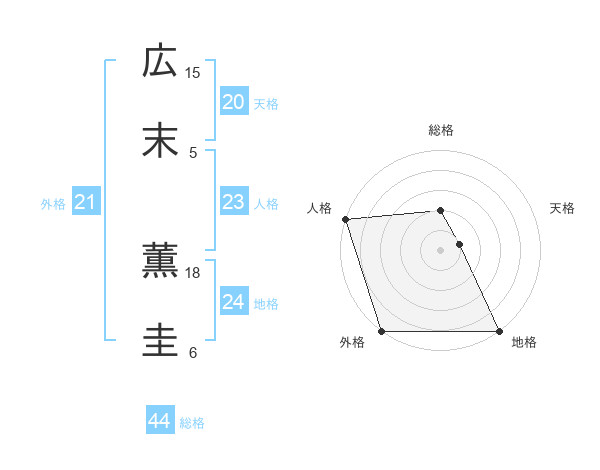 広末 薫圭さんを姓名の画数から五運を鑑定