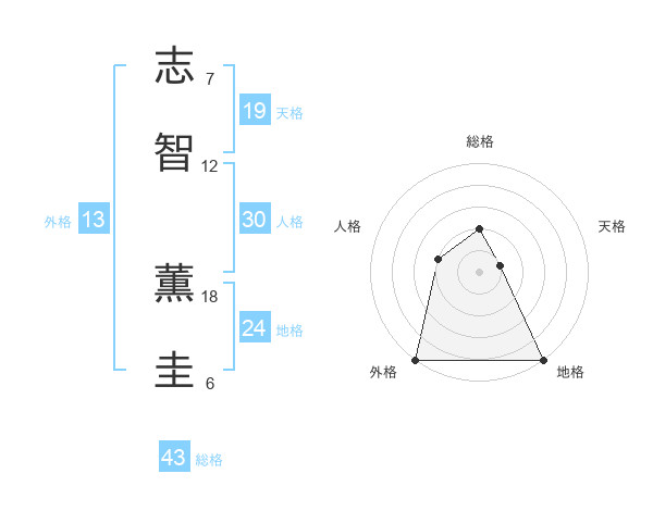志智 薫圭さんの総格は43画の2点!